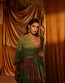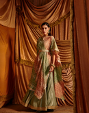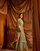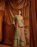 Onion Pink And Sage Green Chikankari Cape Lehenga